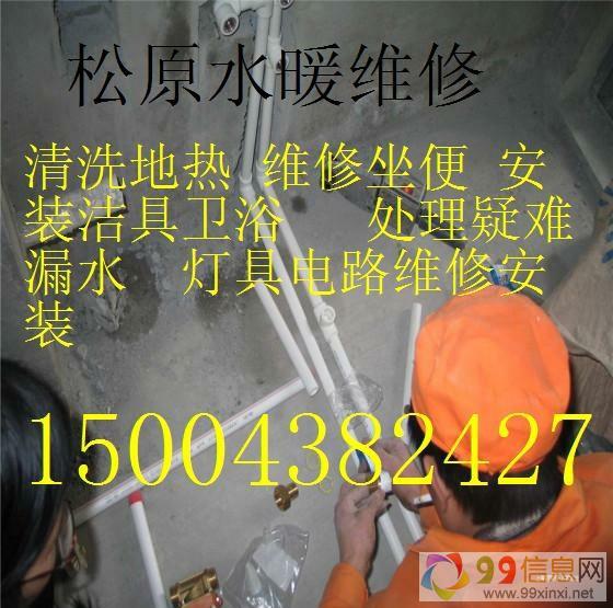 松原服务电话 15004382427 有证水暖师傅专业承接家庭、单位、公司出现的水管断裂、水管渗水、水管漏水、暗管漏水、软管漏水、阀门漏水等现象,并且专业更换水表、更换阀门、更换混水阀、安装维修上、下水管、改造各种水管,马桶维修,卫浴洁具维修,防臭等9+9+x+i+n+x+i+n+e+t。专业安装维修暖气、地热、上下水、冷热水管、水龙头,有丰富工作经验,收费低,24小时您服务,技术精湛。水暖施工专用大小设备全都有,经验丰富9_9_信_息_网。服务范围:一、水龙头及水管安装改造维修:1、水龙头安装,旧水龙头漏水更换或维修的各种…问题。2、水管:各种冷热水管的安装改造,冷热水管各种原因引起的漏水维修9+9+x+i+n+x+i+n+e+t。二、上下水安装改造维修:1、上水的安装改造维修包括(太阳能、洗衣机、热水器、洗面盆、洗菜盆等上水管线)2、下水的安装改造维修包括(卫生间、厨房等下水管线)三、暖气、地热安装维修:1、暖气安装改造维修:暖气安装改造更换,暖气管线漏水维修,暖气不热的维修改造清洗,恢复供暖接管线2、地热安装维修:擅长找地热漏水点,可以确定较小范围进行维修,分水器、阀门、过滤网等的维修更换,恢复供暖接管线,各种地热供暖期不热的问题都可以解决。暖气水管维修/安装 地热暖气洁具卫浴/漏水快修专业安装维修暖气、地热、上下水、冷热水管、水龙头,有丰富工作经验,收费低,24小时您服务,技术精湛9+9+信+息+网。水暖施工专用大小设备全都有,经验丰富。服务范围:一、水龙头及水管安装改造维修:1、水龙头安装,旧水龙头漏水更换或维修的各种…问题www.99xinxi.net。2、水管:各种冷热水管的安装改造,冷热水管各种原因引起的漏水维修。二、上下水安装改造维修:1、上水的安装改造维修包括(太阳能、洗衣机、热水器、洗面盆、洗菜盆等上水管线)2、下水的安装改造维修包括(卫生间、厨房等下水管线)三、暖气、地热安装维修:1、暖气安装改造维修:暖气安装改造更换,暖气管线漏水维修,暖气不热的维修改造清洗,恢复供暖接管线2、地热安装维修:擅长找地热漏水点,可以确定较小范围进行维修,分水器、阀门、过滤网等的维修更换,恢复供暖接管线,各种地热供暖期不热的问题都可以解决9+9+信+息+网。